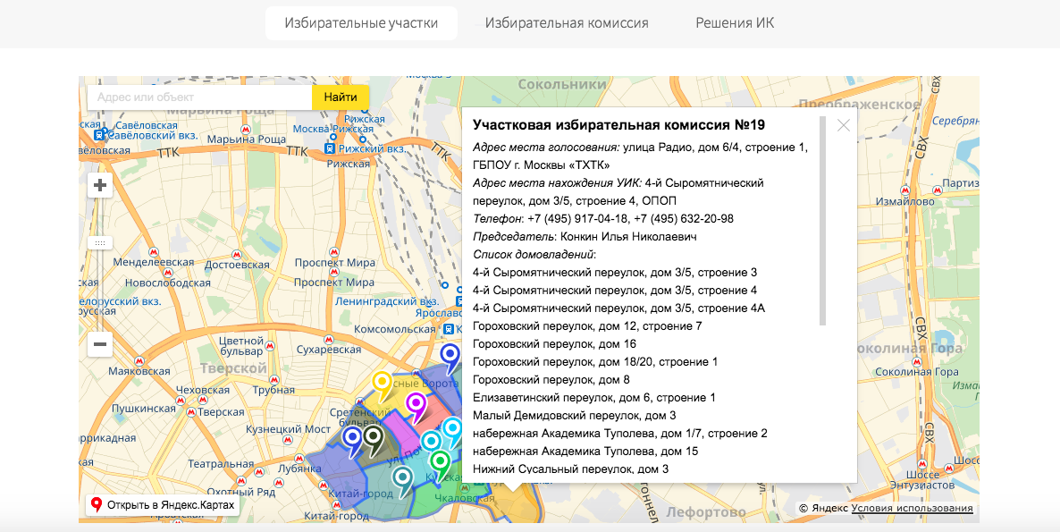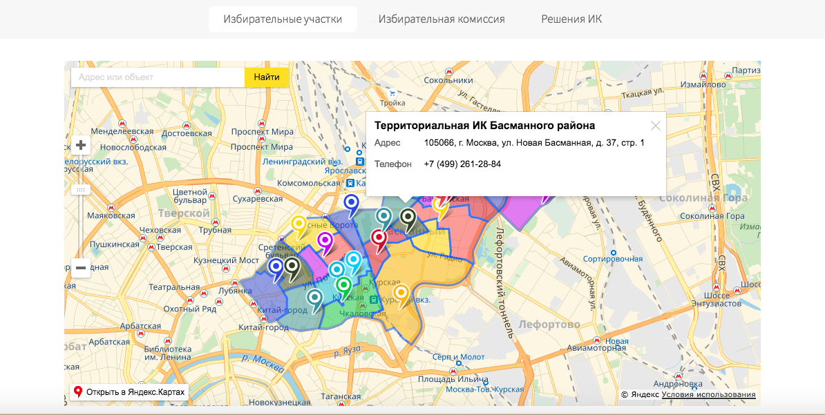 - сведения об избирательных округах, их границах, избирательных участках и местах для голосования (с использованием интерактивных карт);